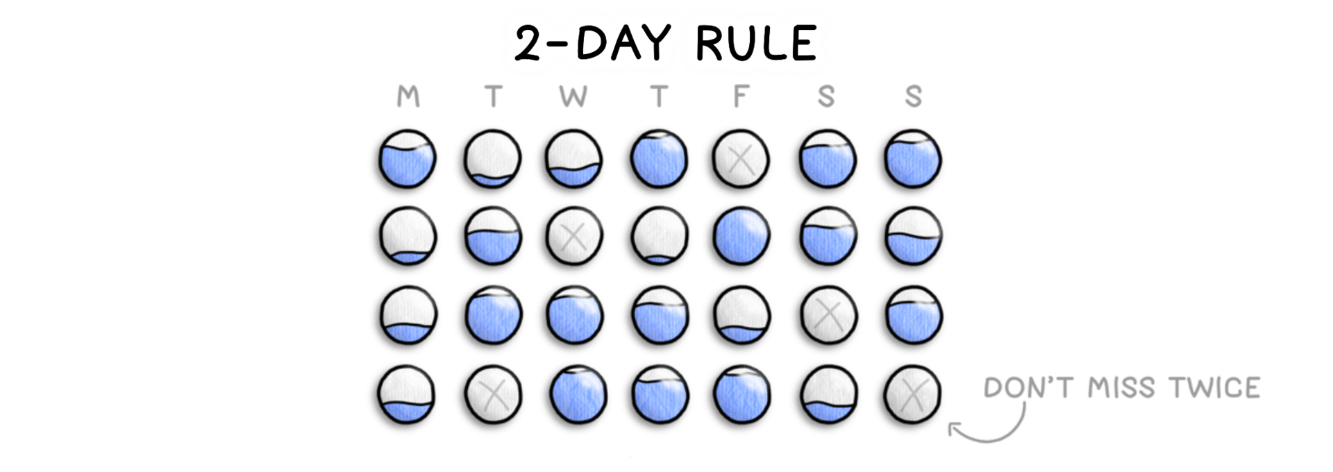 The 2-Day Rule (also called Don’t Miss Twice) is simple: