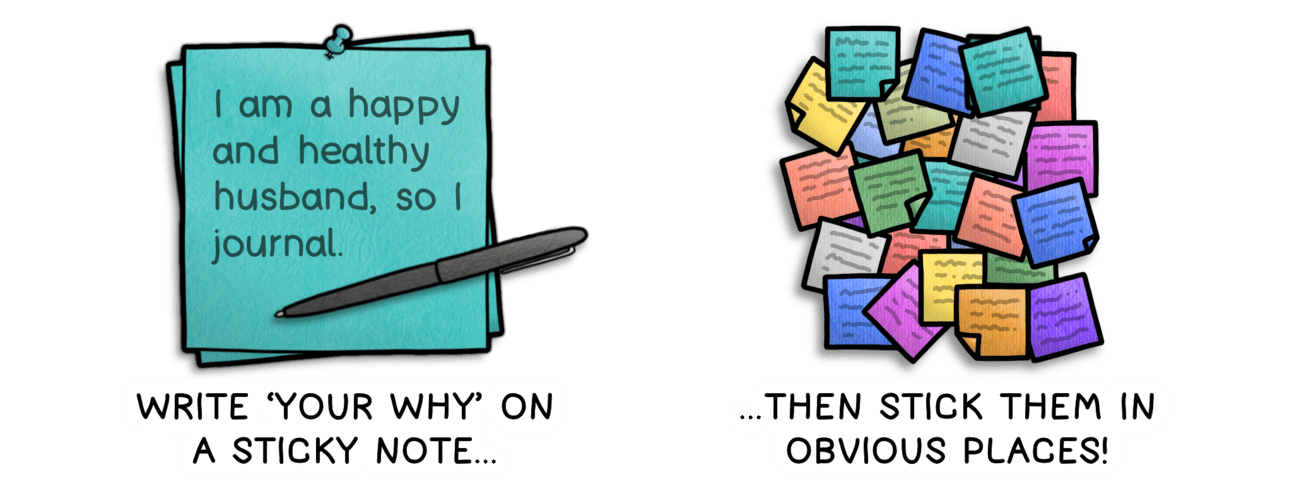 Write your one-sentence why on an actual sticky note and place it somewhere visible—on your journal, laptop, mirror, or pillow.